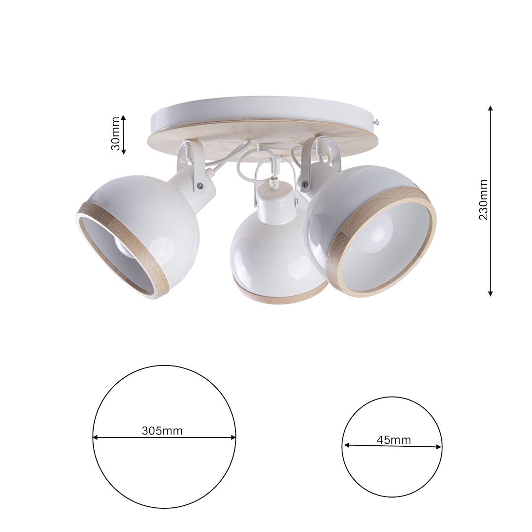 Rozsáhlá kolekce svítidel Oval White zahrnuje až 11 různých typů osvětlení. Rodina zahrnuje malou nástěnnou lampu a stojací lampu, jakož i stropní svítidla v různých konfiguracích: závěsná svítidla s jedním, třemi a pěti světelnými body, na liště se třemi, čtyřmi a pěti světelnými body a na kruhové základně se třemi světelnými body nebo se třemi a pěti světelnými body namontovanými na ramenech. Harakteristickým prvkem celé kolekce je moderní kulovitý tvar. Kromě kovového provedení mají svítidla stylové dřevěné detaily - kroužky na konci stínidel a na ramenech a podstavcích jednotlivých modelů. Dřevěné vložky zateplují celý styl. Představená kolekce se bude skvěle hodit do moderních interiérů, které se vyznačují jednoduchostí a monochromatickými, černobílými barvami. Kombinací jednotlivých modelů můžete vytvořit ucelené a kompletní uspořádání. Výrobce poskytuje na svítidla dvouletou záruku. |