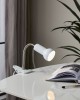 Einfache Lampen mit Clip zur einfachen Platzierung der Lampe auf einem Schreibtisch oder Regal im Büro oder Arbeitszimmer. Sie haben einen flexiblen Hals. Sie bestehen aus Stahl und Kunststoff.