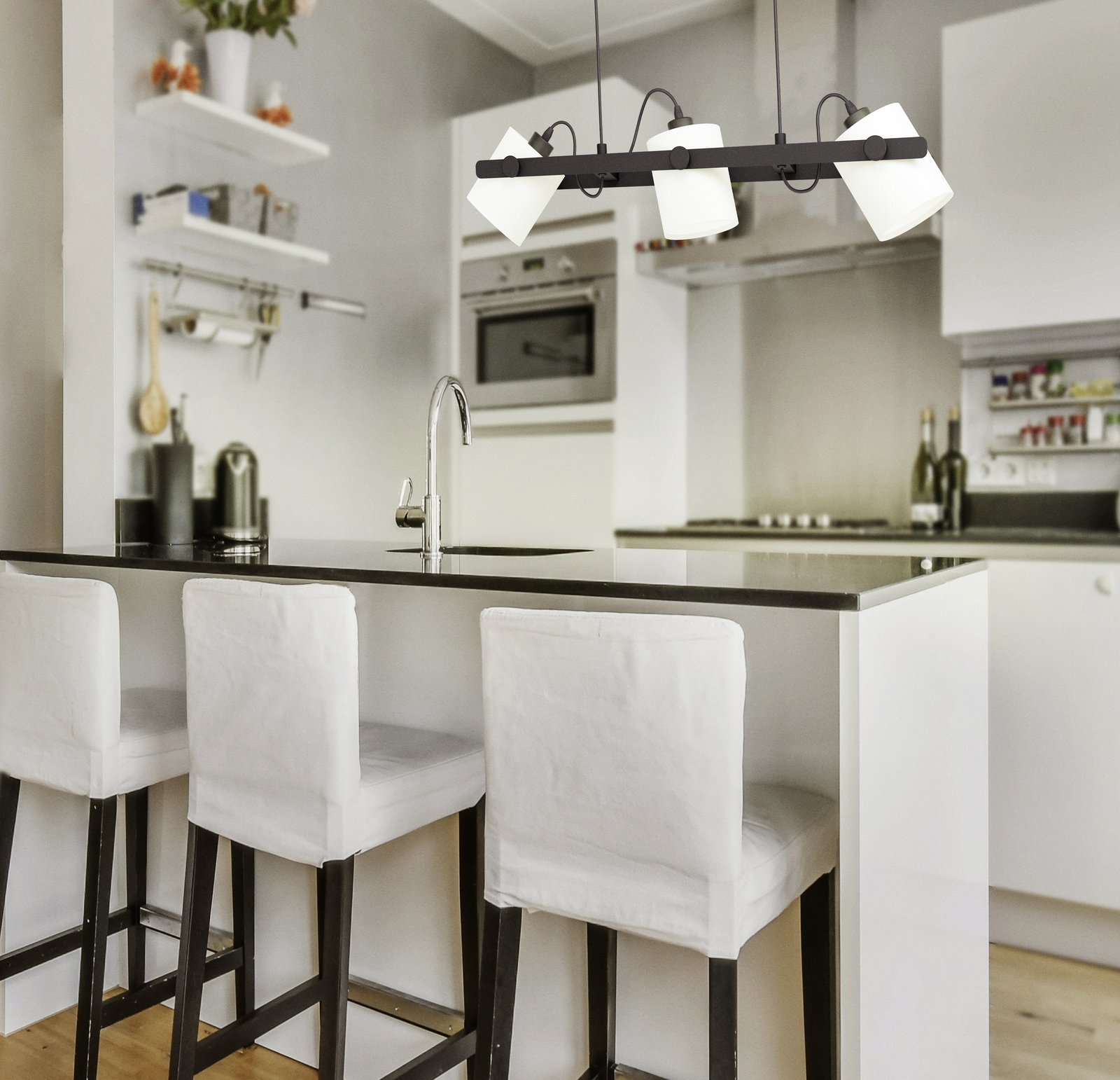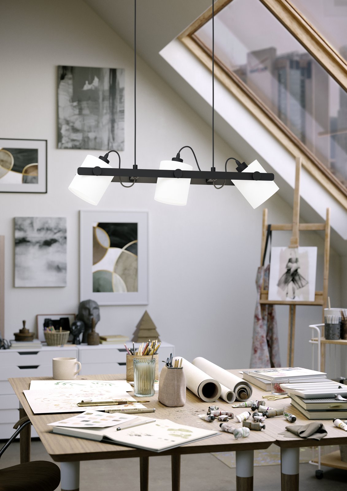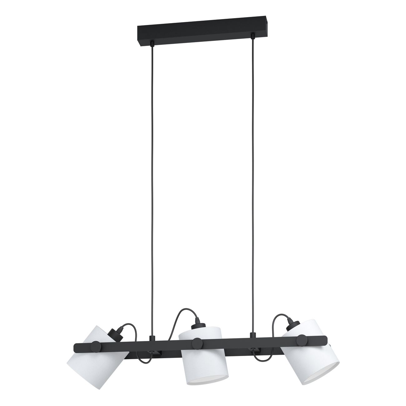 Moderne, stilvolle Lampen aus Stahl und Holz in Schwarz und Textil in Weiß. Die Köpfe, die auf einem Holzsockel stehen, sind seitlich beweglich und können dorthin gedreht werden, wo Sie glänzen möchten. |