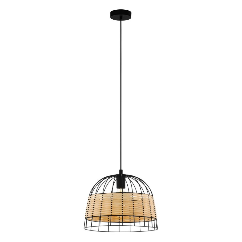 Anwick-Armaturen bestehen aus schwarzem Stahl und der Schirm ist eine Kombination aus schwarzem Stahl und natürlichem Rattan. Sie haben ein sehr interessantes Design. |