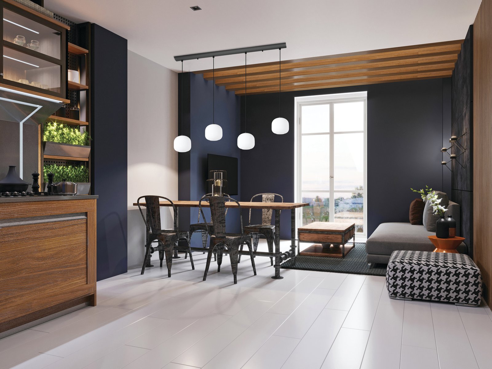 Interessante Lampen für Wohnzimmer, aber auch Küchen und Esszimmer. Sie bestehen aus Stahl und Glas. |