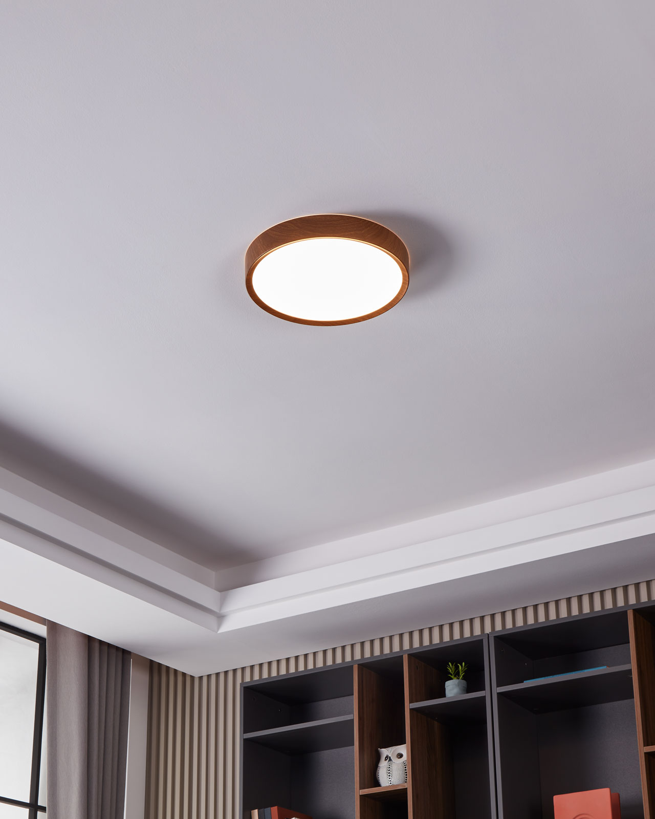 Moderne, runde Deckenleuchten haben ein schlichtes Design und passen somit in Ihr gesamtes Zuhause. Sie bestehen aus Stahl und einem Kunststoffdiffusor.