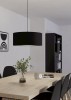 Die schlichten, aber modernen Maserlo-Kronleuchter bestehen aus Stahl und Textil in Schwarz. Es besteht die Möglichkeit, sie mit einer smarten LED-Glühbirne auszustatten und über ein Smartphone zu steuern. Ändern Sie die Intensität und Farbe der Beleuchtung. |