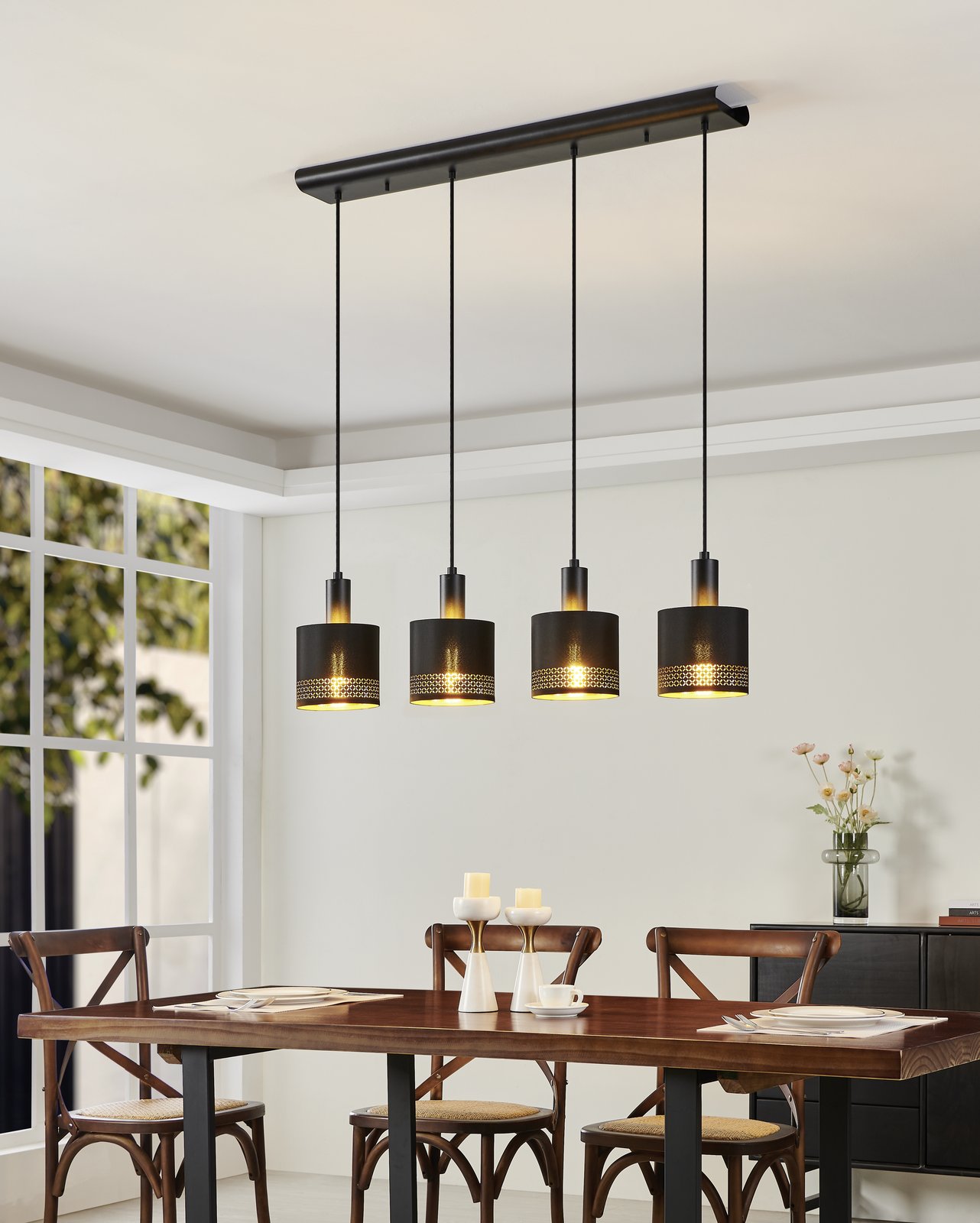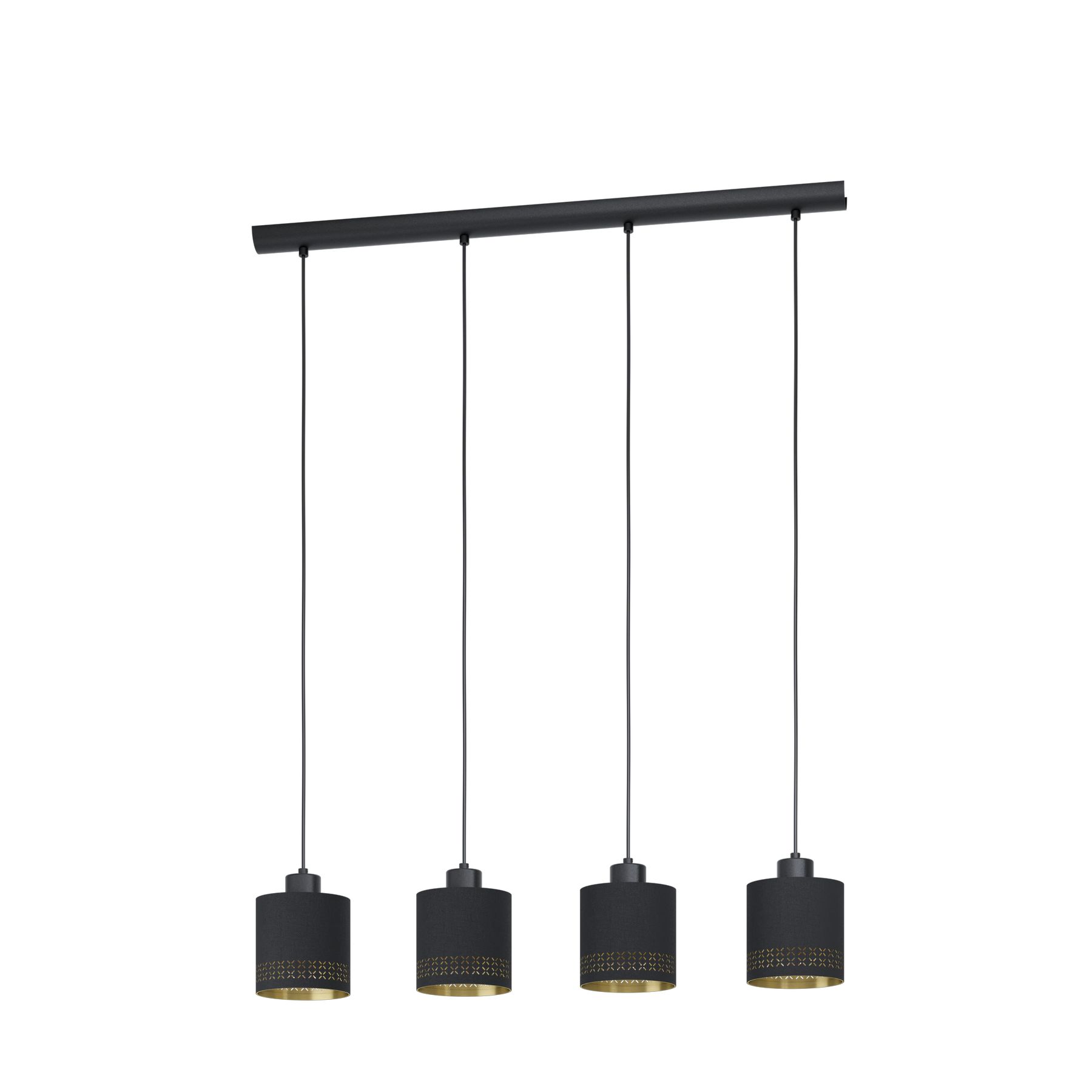 Die sehr interessanten und modernen Esteperra-Lampen bestehen aus Stahl in Schwarz und Textil in Schwarz und Gold. Durch den Einsatz dieser Lampen können Sie im Innenraum ein vollständiges Ganzes erreichen. |