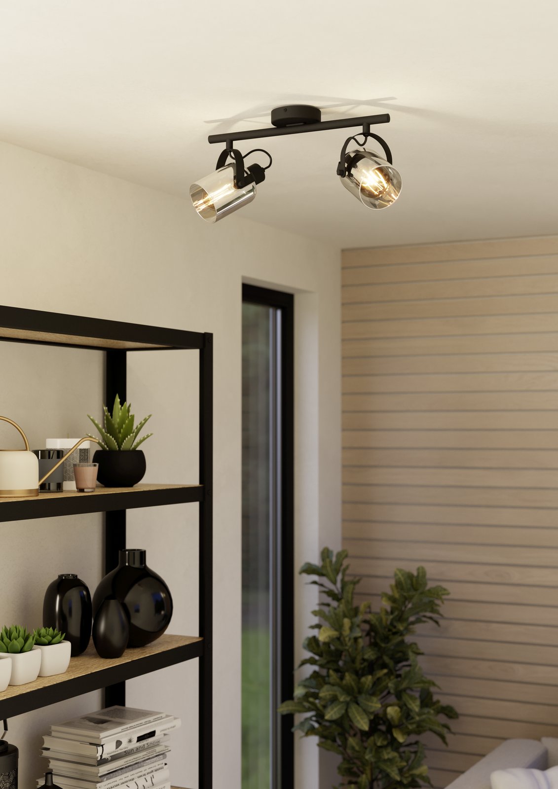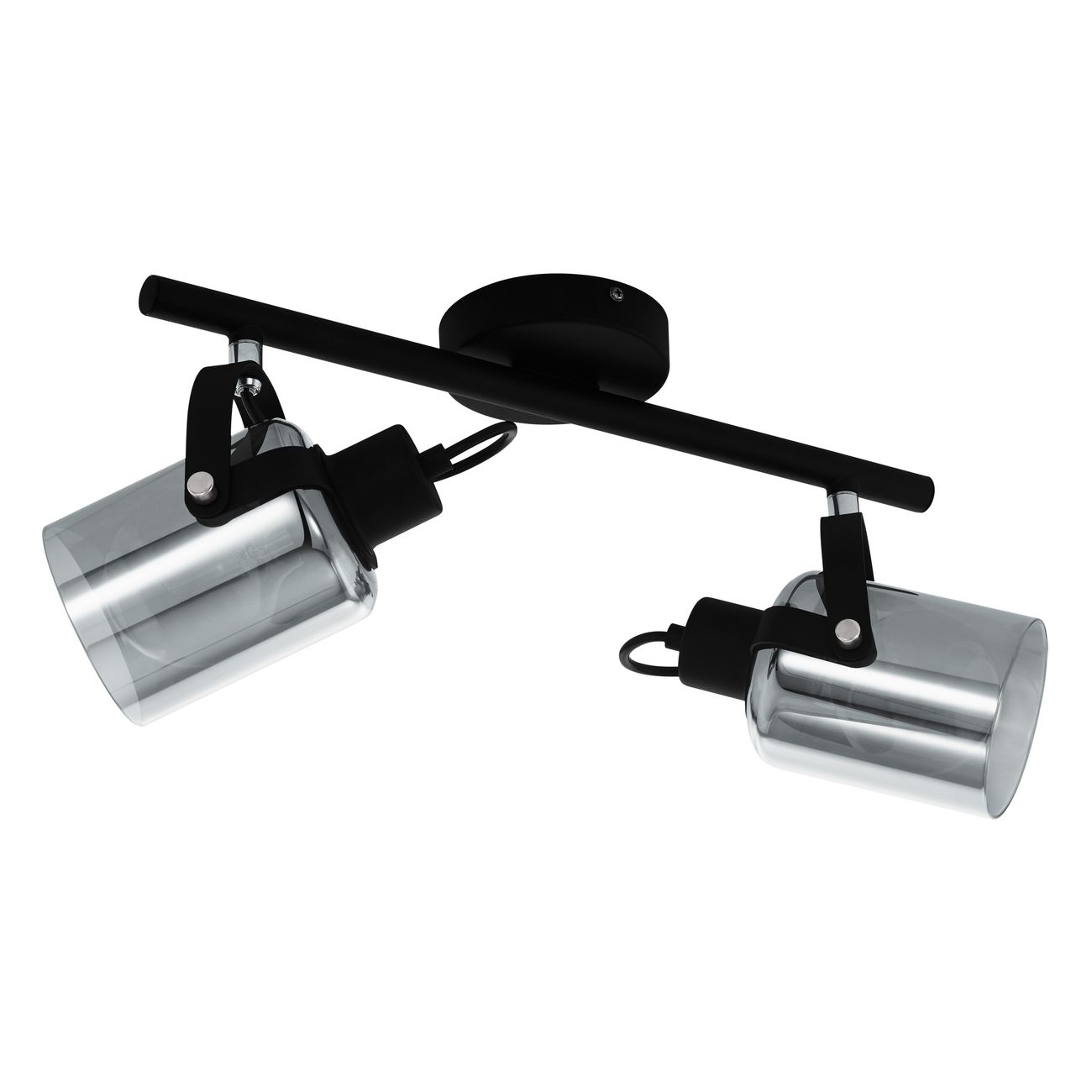 Stilvolle Strahler, die für alle modernen Innenräume geeignet sind. Sie bestehen aus schwarzem Stahl und Rauchglas. Stilvolle Glühbirnen können verwendet werden, um den Gesamteindruck der Leuchte zu vervollständigen. |