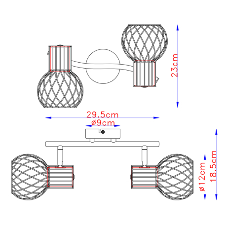 GL-54013-2 Nástěnné svítidlo, kov černý zlatý, kov černý, Dx?xV: 30x23x19cm, bez žárovek 2xE27, max. 40W 230V -