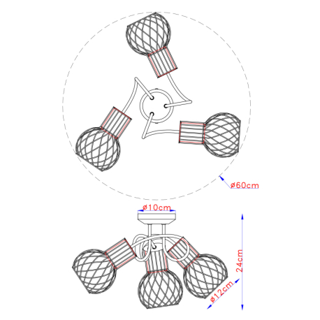 GL-54013-3 Stropní svítidlo, kov černý zlatý, kov černý, Ø60cm, V:24cm, bez žárovek 3xE27, max. 40W 230V -