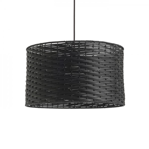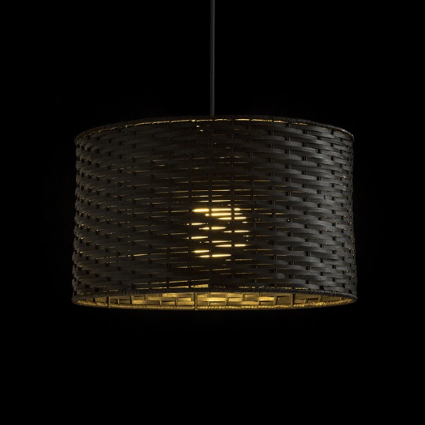 Hängelampe mit Bambusschirm in elegantem Schwarz. Es eignet sich für Wohnzimmer, Küche und Esszimmer. |