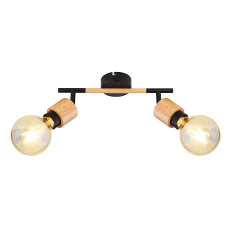 GL-54031-2 Nástěnné svítidlo, kov černý, světlé dřevo, Dx?xV: 30x8x16cm, bez žárovek 2xE27, max. 40W 230V -