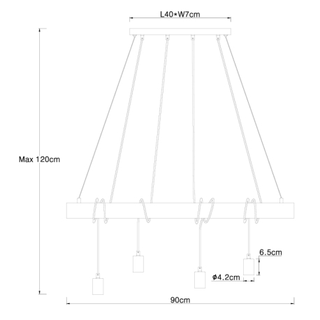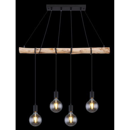 GL-15439-4 Závěsné svítidlo, kov černý matný, dřevo, Dx?xV: 90x7x120, bez žárovek 4xE27, max. 60W 230V -