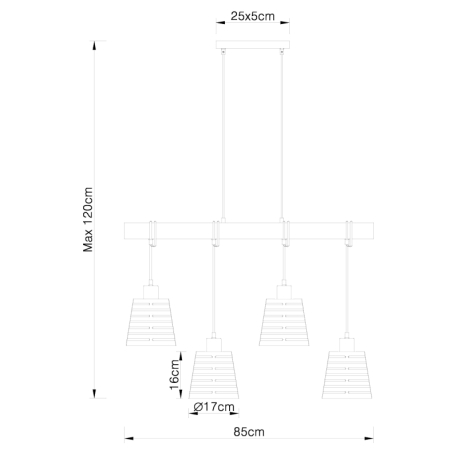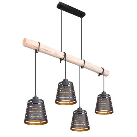 GL-15451-4H Závěsné svítidlo, kov černý matný, dřevo, kov černý a zlatý, Dx?xV: 85x17x120cm, bez žárovek 4xE27, max. 60W 230V -