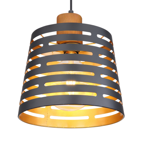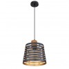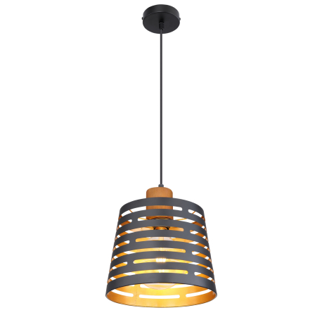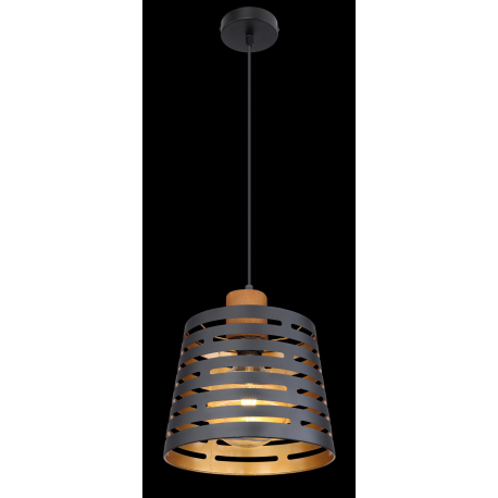 GL-15451H Závěsné svítidlo, kov černý matný, dřevo, kov černý a zlatý, Ø25cm, V:120cm, bez žárovky 1xE27, max. 60W 230V -