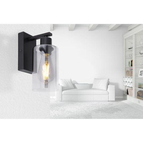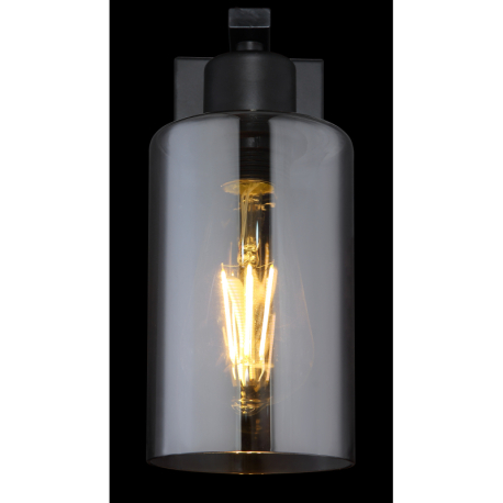 GL-15465W Nástěnné svítidlo, kov černý, sklo kouřové, svítí směrem dolů, ?xV: 10x23cm, H:15cm, bez žárovky 1xE27, max. 60W 230V -