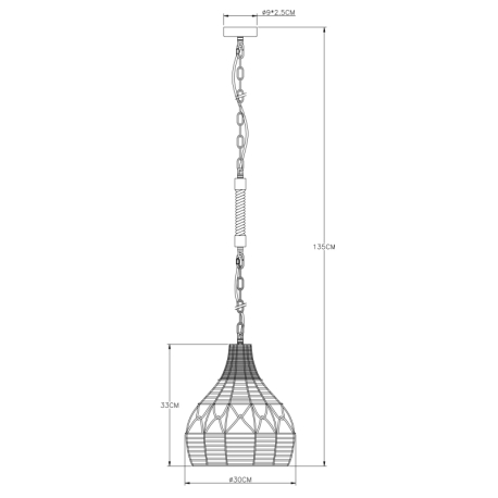 GL-15671H Závěsné svítidlo, kov černý matný, konopné lano hnědé, černý řetěz, Ø30cm, V:135cm, bez žárovky 1xE27, max. 60W 230V -