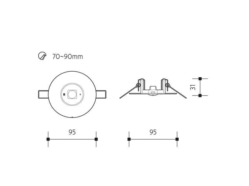 | Ausschnitt | 70-90 mm |