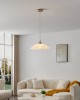 Eine Küchenlampe im klassischen Stil aus Stahl in der Farbe Mattnickel und Glas in der Farbe Weiß mit Dekor. |