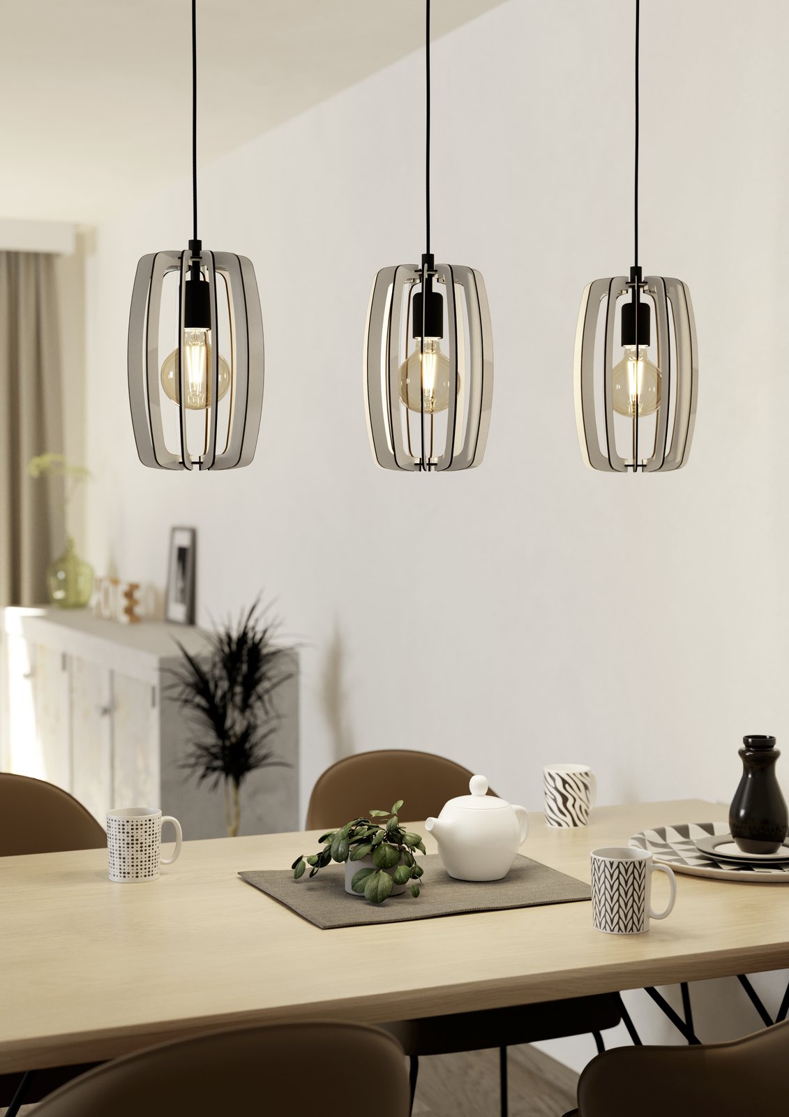 Interessante Pendelleuchten für moderne Innenräume. Sie bestehen aus Stahl und Holz. Es besteht die Möglichkeit, sie mit einer smarten LED-Glühbirne auszustatten und diese über Ihr Smartphone zu dimmen oder die Temperatur und Farbe der Beleuchtung zu ändern. |