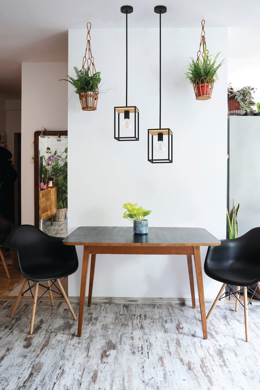 Stilvolle quadratische Lampen aus schwarzem Stahl und braunem Holz. Sie machen im Wohnzimmer, in der Küche über dem Esstisch, im Schlafzimmer, aber auch im Flur oder im Flur einen interessanten Eindruck. |