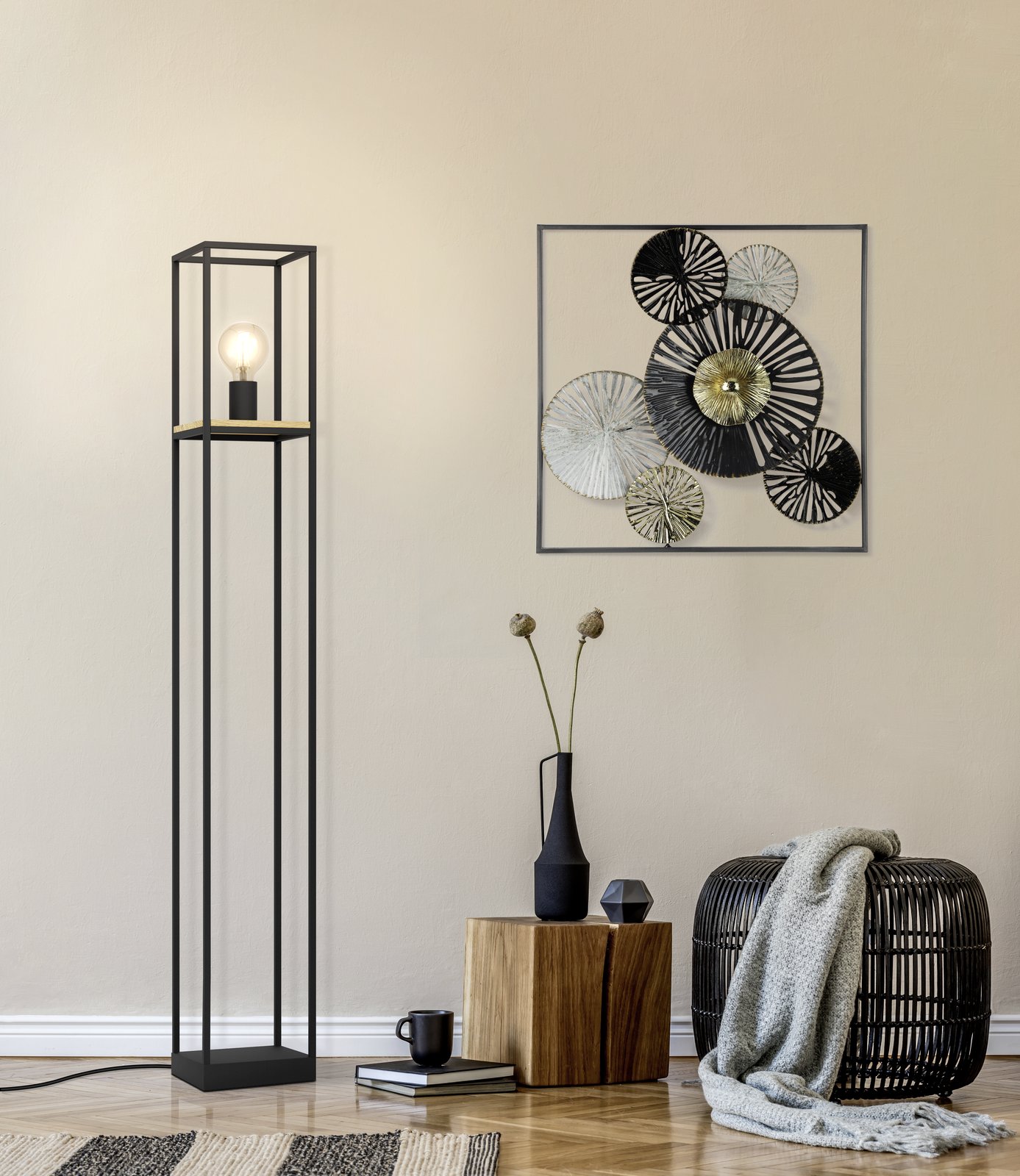Stilvolle Lampen und Tischlampen, die für alle modernen Innenräume geeignet sind. Sie bestehen aus schwarzem Stahl und Holz. Wenn Sie ein interessantes Element für Ihr Wohn- oder Schlafzimmer wünschen, sind diese Lampen die richtige Wahl. |