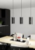 Moderne, stilvolle Lampen Pinto Textil 2. Der Sockel besteht aus Stahl in schwarzer Farbe, der Schirm besteht aus einem Glaszylinder in klarer Farbe, in dessen Inneren sich ein Textilzylinder in schwarzer Farbe befindet. Nach dem Anzünden dringt das Licht auch durch das Dekor im Textil im Inneren des Zylinders, was sehr effektvoll wirkt.