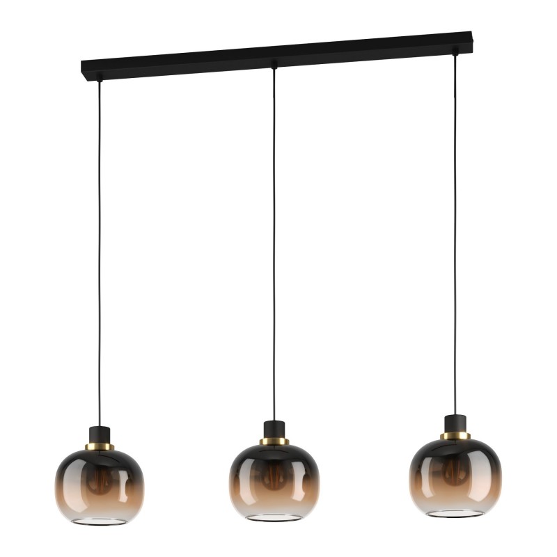 Nowoczesne lampy wiszące Oiella nadają się do kuchni i jadalni, ale także do salonów. Podstawa wykonana jest ze stali w kolorze czarnym i mosiądzu, a klosz ze szkła w kształcie kuli. |