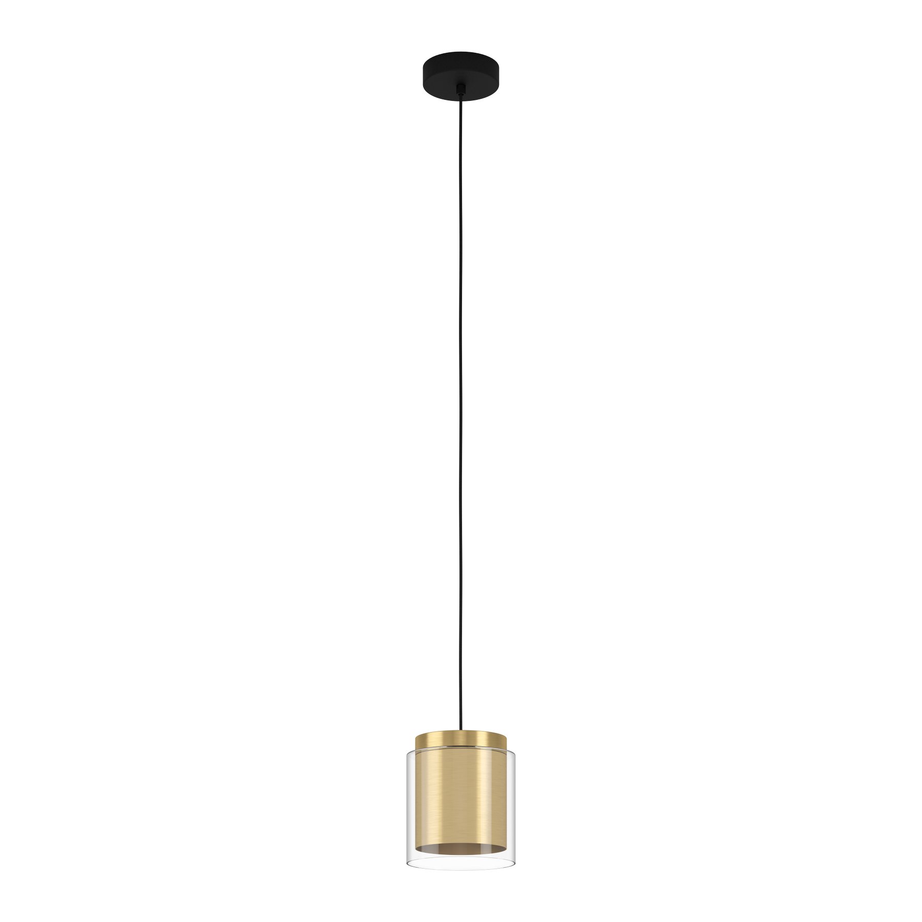 Moderne Pendelleuchten geeignet für Wohnzimmer, Küchen über der Kücheninsel und Esszimmer über dem Esstisch. Der Sockel besteht aus Stahl in schwarzer Farbe, das Scharnier aus Stahl in Messing- und Goldfarbe und aus Glas in klarer Farbe. |