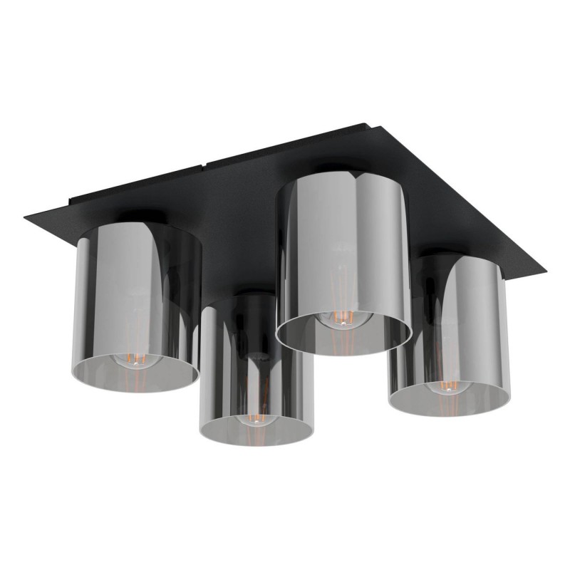 Sehr schöne Deckenleuchten geeignet für Wohnzimmer, Küche, Esszimmer, aber auch für geräumige Flure. Sie bestehen aus schwarzem Stahl und Rauchglas. |