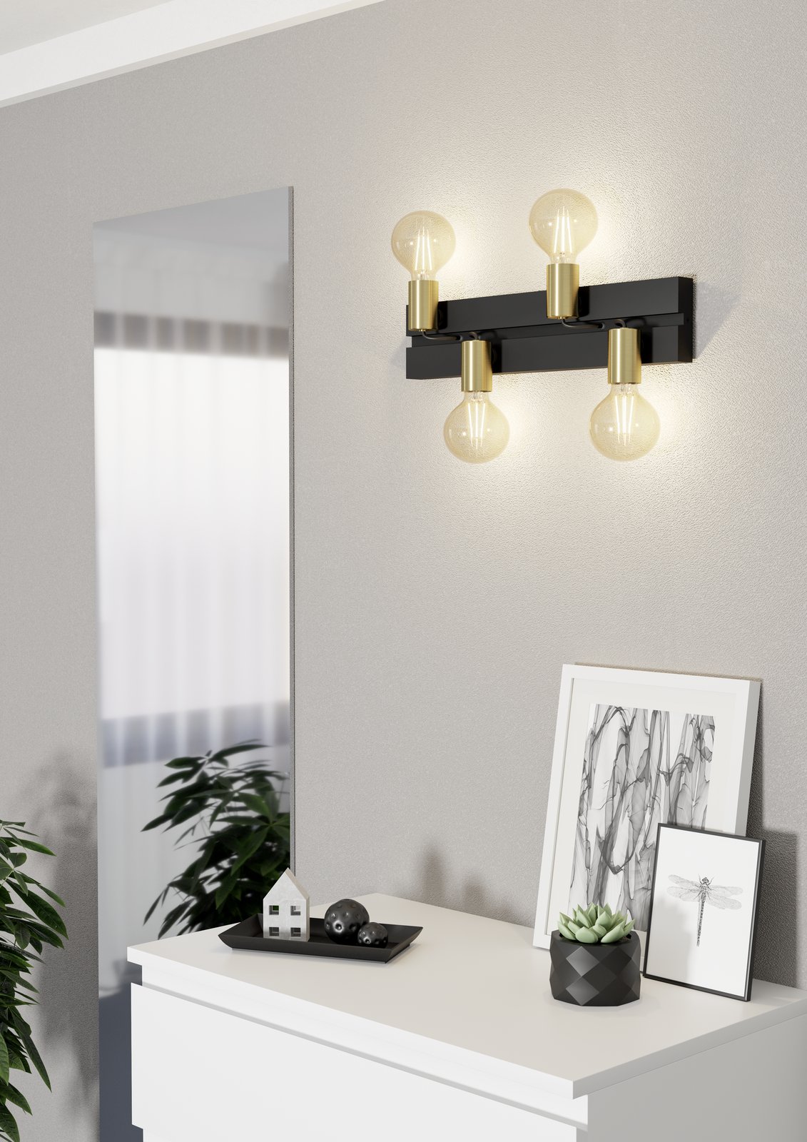 Macchione ist eine Wandleuchte aus Stahl in schwarzer Farbe kombiniert mit Messing. Es eignet sich für alle modernen Innenräume. |