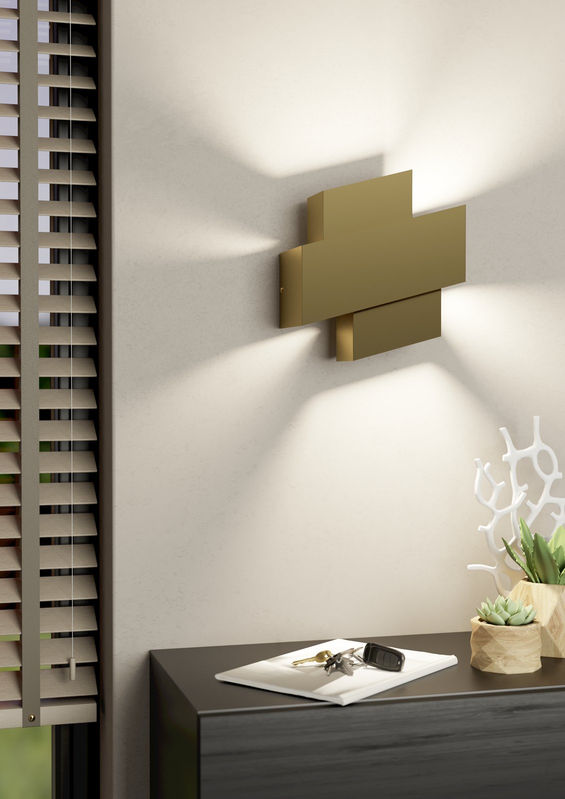 Design-Wandleuchten aus Stahl. Sie eignet sich zur Beleuchtung der Wände im Wohnzimmer, aber auch im Flur und Flur.
