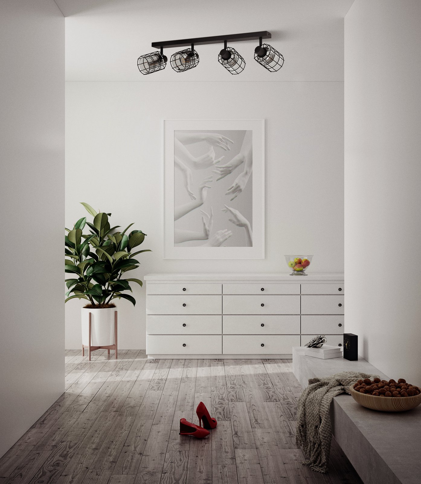 Moderne Strahler passend für alle Innenräume. Sie bestehen aus schwarzem Stahl und Rauchglas. |
