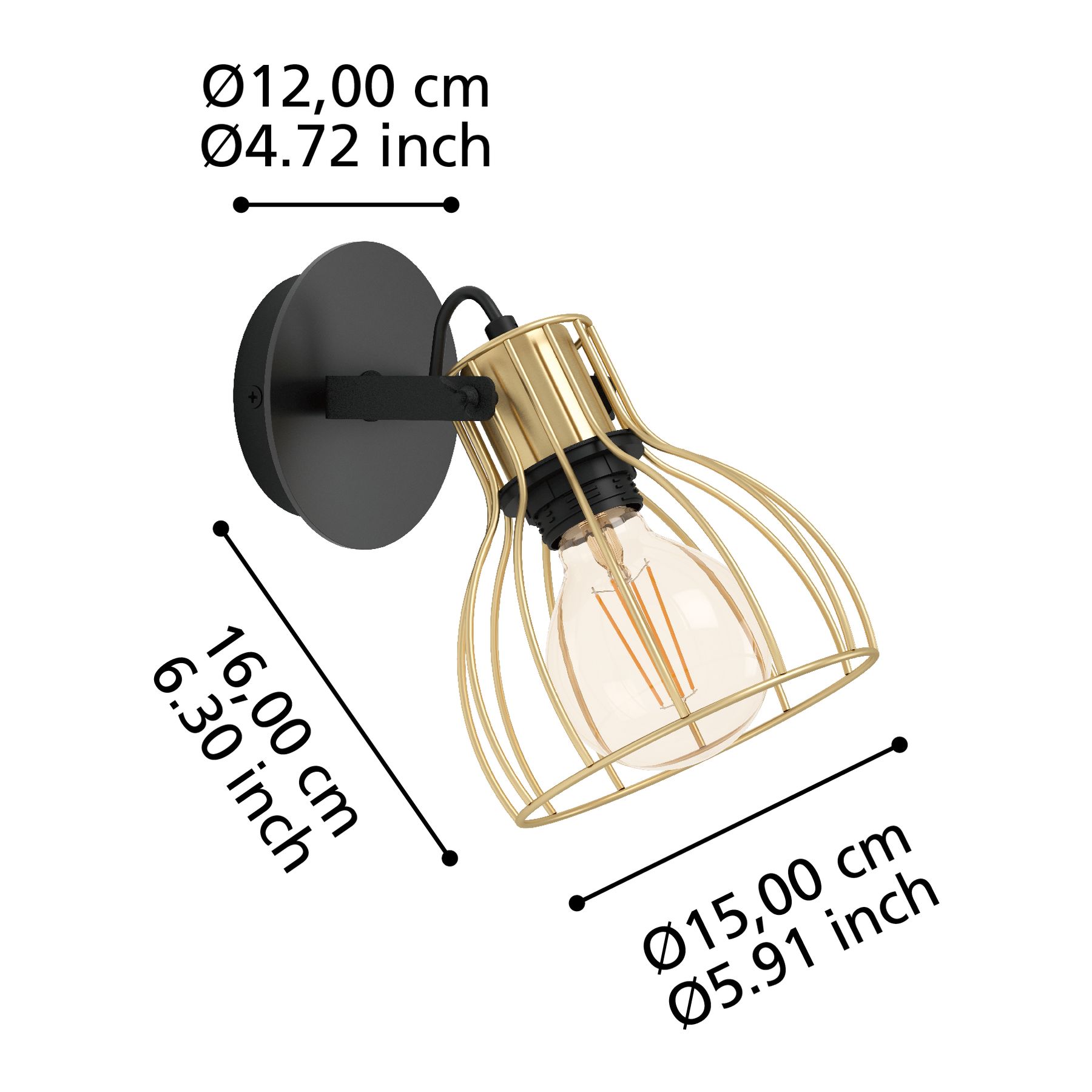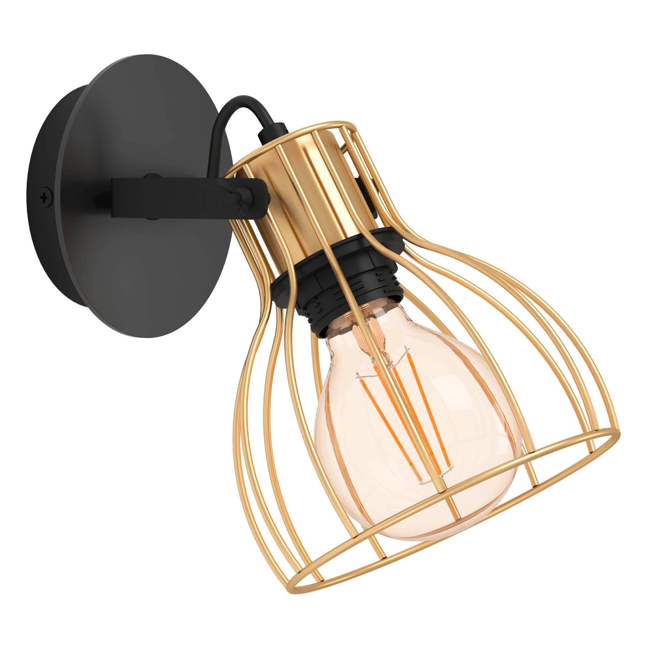 Moderne Strahler aus Stahl und Holz in der Farbe Schwarz und Lampenschirme aus Stahldrähten in der Farbe gebürstetem Messing. Perfekt für Wohnzimmer, Küchen, Schlafzimmer, Flure und Dielen. |