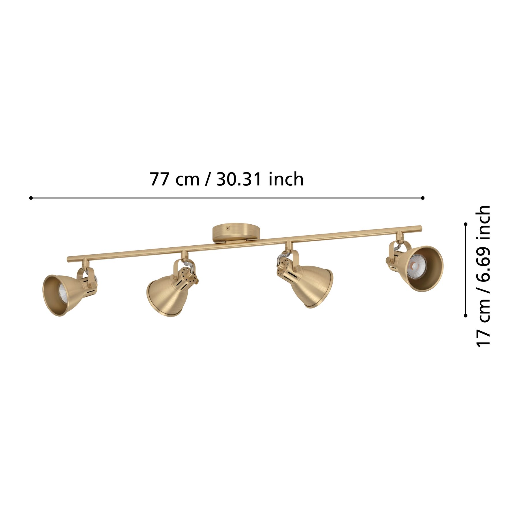 Klassische Strahler aus Stahl in den Farben gebürstetes Messing und Gold. Der Vorteil dieser Lampen besteht darin, dass der Lampenschirm neigbar ist, sodass Sie dort beleuchten können, wo Sie es benötigen. Sie eignen sich für Wohnzimmer, Schlafzimmer, Flure... Diese Lampen werden inklusive Leuchtmittel mit GU10-Gewinde geliefert.