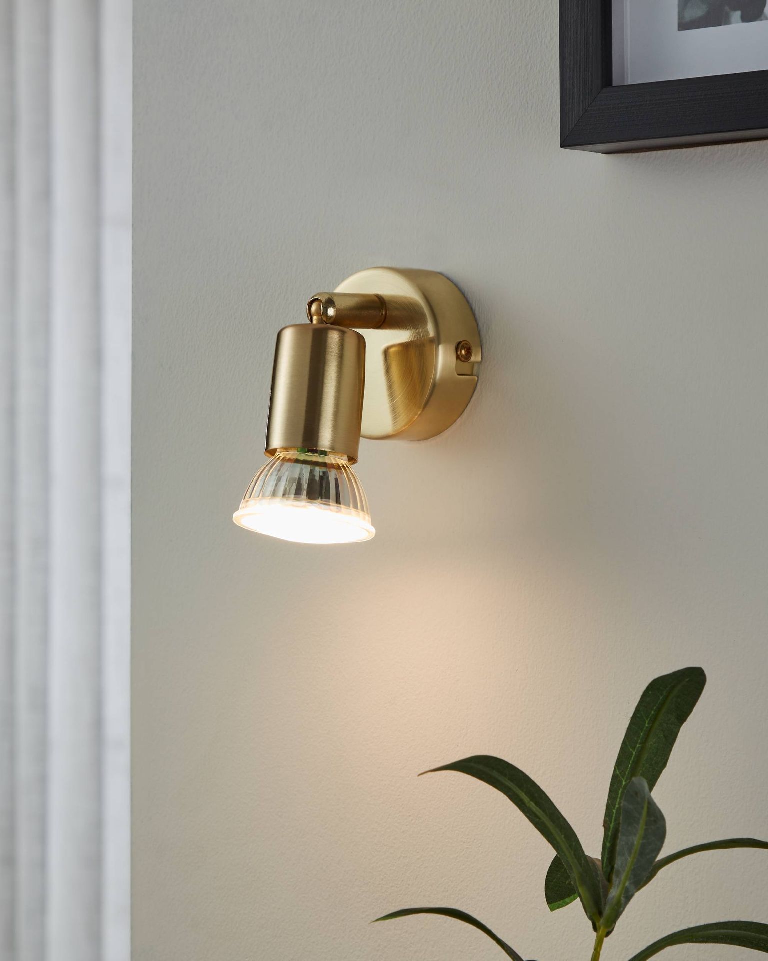 Klassische Strahler aus Stahl in der Farbe gebürstetem Messing. |