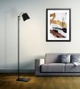Lampe und Tischleuchte im modernen Stil. Sie bestehen aus schwarzem Stahl mit einer Kombination aus Holzelementen. Der Hut besteht aus Stahl in Schwarz und Creme. |