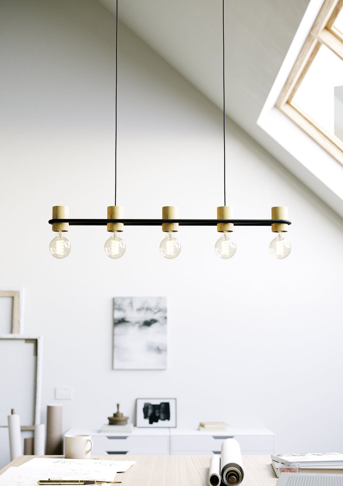 Moderne, stilvolle Lampen aus schwarzem Stahl und braunem Holz. Es eignet sich perfekt für Wohnzimmer, Küchen, Esszimmer sowie Flure und Schlafzimmer. Sie können das Gesamtbild vervollständigen, indem Sie eine interessante Glühbirne auswählen. |