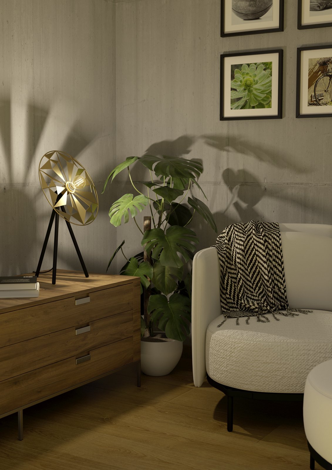 Eine Lampe und eine Tischlampe in interessantem Design sind ein tolles Element für Ihr modernes Interieur. Sie sind aus goldfarbenem Stahl gefertigt. Es besteht die Möglichkeit, sie mit einer smarten LED-Glühbirne auszustatten und über Ihr Smartphone die Farbe und Temperatur der Beleuchtung zu dimmen oder zu ändern. |