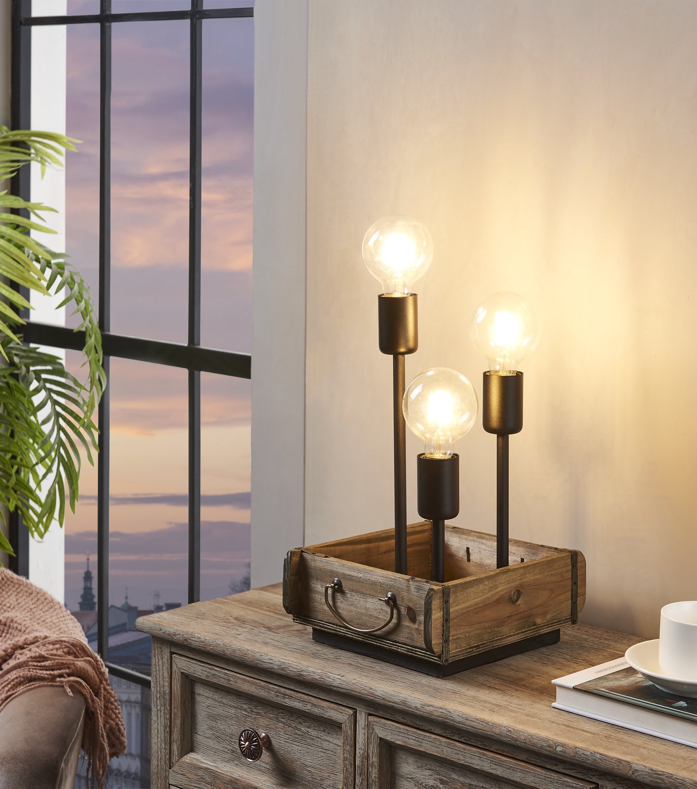 Stilvolle Lampen aus Holz in brauner Farbe und Stahl in schwarzer Farbe. Eine hölzerne „Box“, in der eine Fassung für eine Glühbirne in Schwarz untergebracht ist. Bestücken Sie sie mit interessanten Retro-Glühbirnen, die die Einzigartigkeit dieser Lampe noch verstärken. |