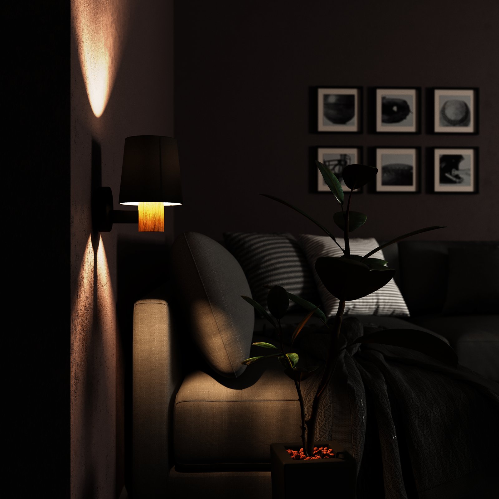 Edale-Lampen bestehen aus Stahl in der Farbe Schwarz und Textil in der Farbe Cappuccino. Der Sockel hat auch ein interessantes Holzelement. Es passt in den Innenraum, der im klassischen Stil eingerichtet ist. Die Kronleuchter aus diesem Set eignen sich nicht nur für Küchen und Esszimmer, sondern auch für Wohnzimmer, wo sie zusammen mit einer Wandleuchte ein interessantes Element bilden.