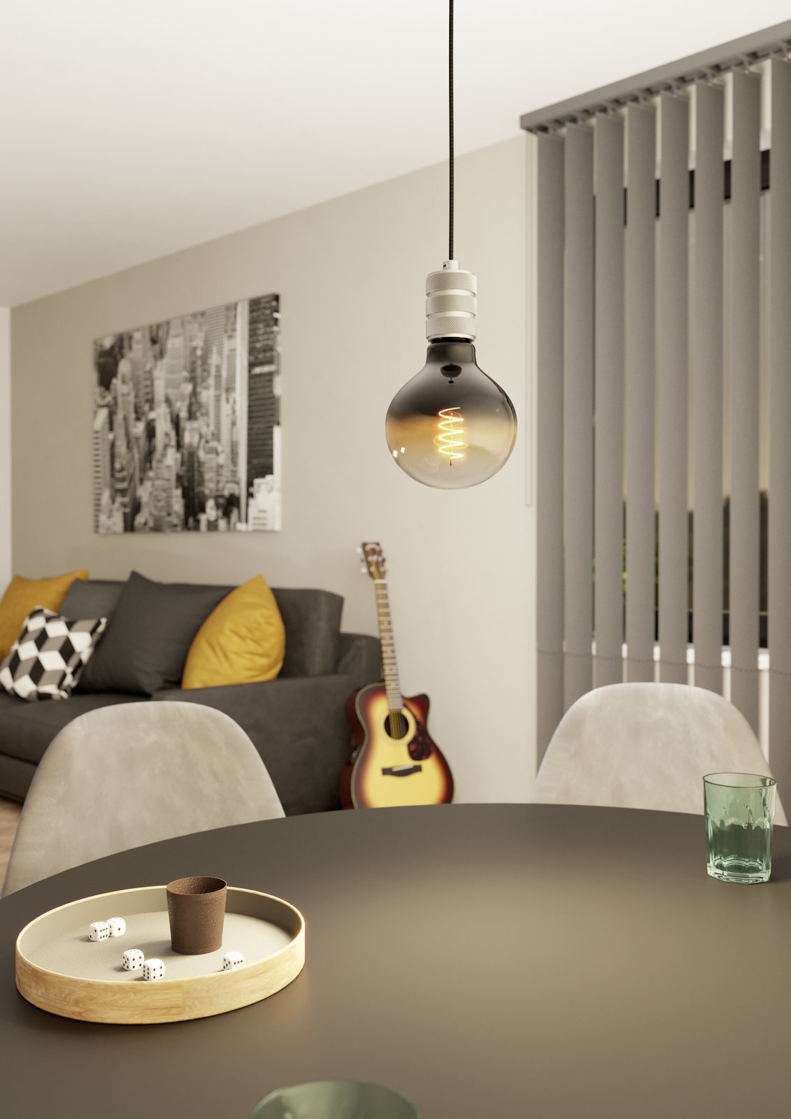 Eine einfache Hängelampe, die für alle modernen Innenräume geeignet ist. Es besteht aus Stahl und eignet sich für Wohnzimmer, Küche, Esszimmer und Schlafzimmer. Wenn Sie sie mit einer interessanten Glühbirne ausstatten, verbessern Sie das Gesamtbild der Lampe. |