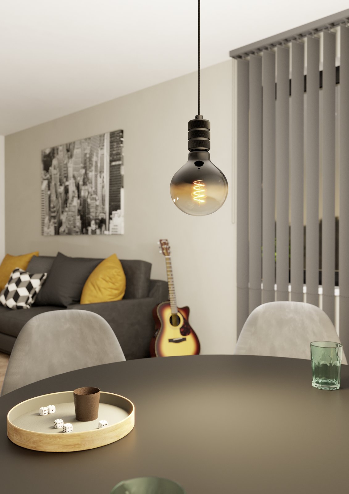 Eine einfache Hängelampe, die für alle modernen Innenräume geeignet ist. Es besteht aus Stahl und eignet sich für Wohnzimmer, Küche, Esszimmer und Schlafzimmer. Wenn Sie sie mit einer interessanten Glühbirne ausstatten, verbessern Sie das Gesamtbild der Lampe.