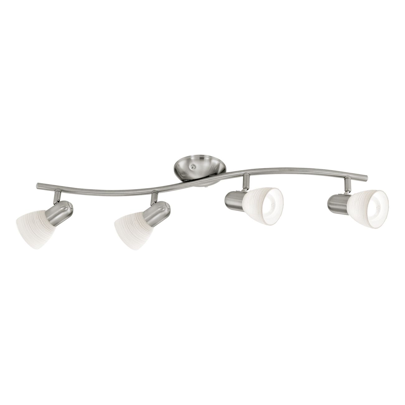 Klassische Strahler aus Metall in mattem Nickel und handgefertigtem Weißglas in der sogenannten Scraping-Technik, wodurch ein interessantes Dekor auf dem Glas entsteht. |