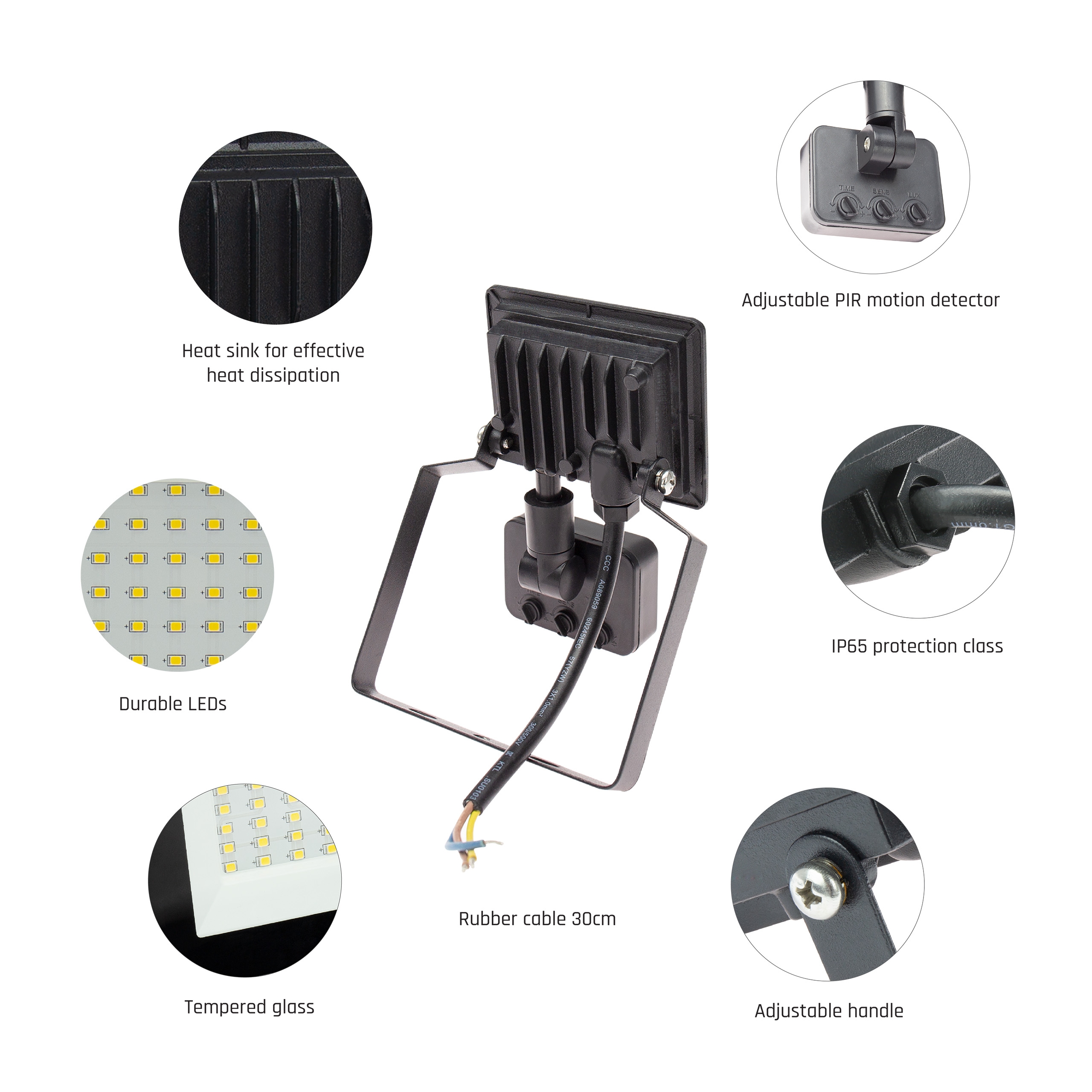 Woj-SLI029048NW_CZUJNIK_PW  NOCTIS LUX 3 FLOODLIGHT 10W NW 230V IP44 114x150x53mm BLACK with PIR sensor -
