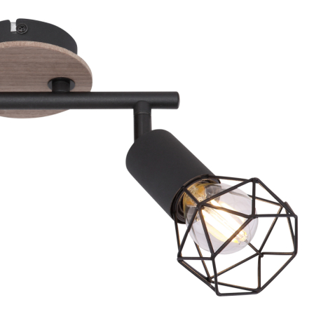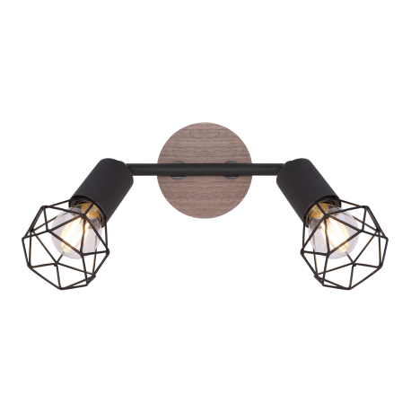 GL-54802S-2H Bodové svítidlo, kov černý, dřevo hnědé, Dx?xV: 22x10x18cm, bez žárovek 2xE14, max. 40W 230V -
