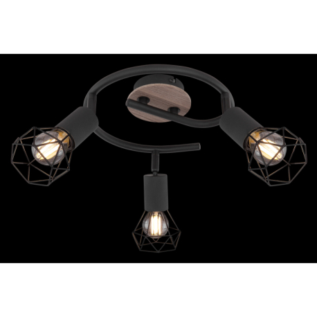 GL-54802S-3H Stropní svítidlo, kov černý, dřevo hnědé, Ø23cm, V:22cm, bez žárovek 3xE14, max. 40W 230V -