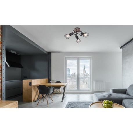 GL-54802S-3DH Stropní svítidlo, kov černý, dřevo hnědé, Ø38cm, V:21cm, bez žárovek 3xE14, max. 40W 230V -