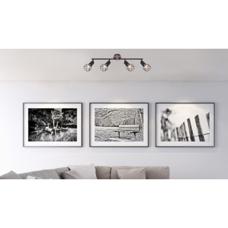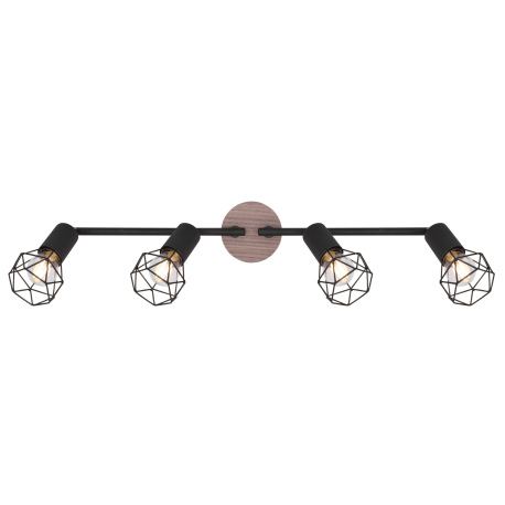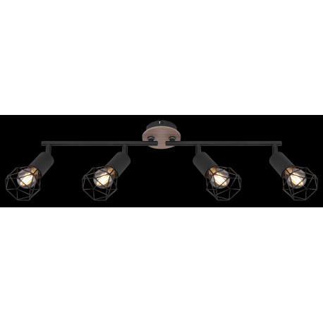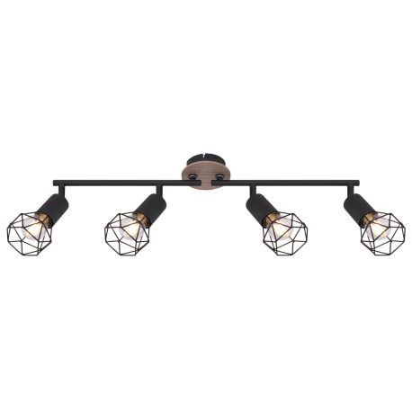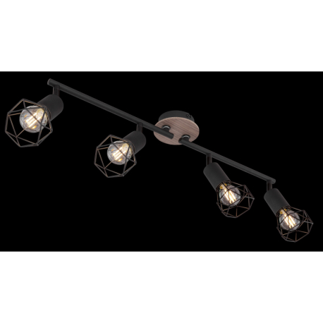 GL-54802S-4H Stropní svítidlo, kov černý, dřevo přírodní, nastavitelné, Dx?xV: 60x10x22cm, bez žárovek 4xE14, max. 40W 230V -