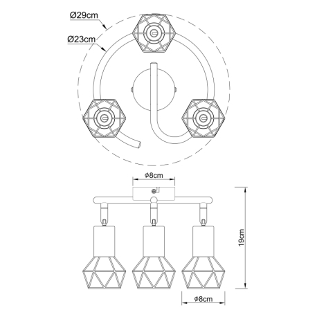 GL-54802S-3AB Stropní svítidlo, kov černý, starožitná mosaz Ø23cm, V:19cm, bez žárovek 3xE14, max. 40W 230V -