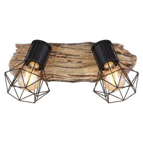 GL-54017W-2 Nástěnné svítidlo, kov černý, plast vzhled dřeva, kovová mřížka, Dx?xV: 39x12x23cm, bez žárovek 2xE27, max. 60W 230V -