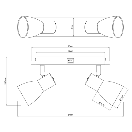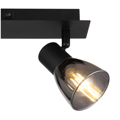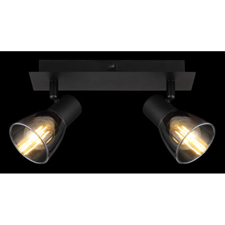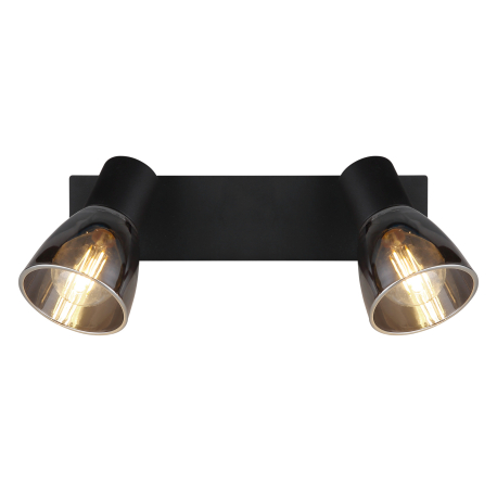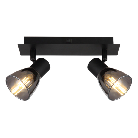 GL-54307-2 Nástěnné svítidlo, kov černý, kouřové sklo, s vypínačem, Dx?xV: 25x7x16cm, bez žárovek 2xE14, max. 40W 230V -