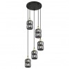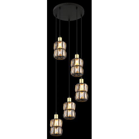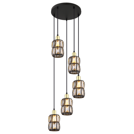 GL-15761-5B Závěsné svítidlo, kov černý, skleněné křišťály kouřové, kov matný, černý PVC kabel, Ø30cm, V:120cm, bez žárovek 5xE14, max. 40W 230V -